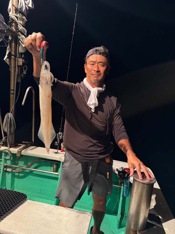 電気を点灯してからなかなかイカが上がってこず、場所移動。